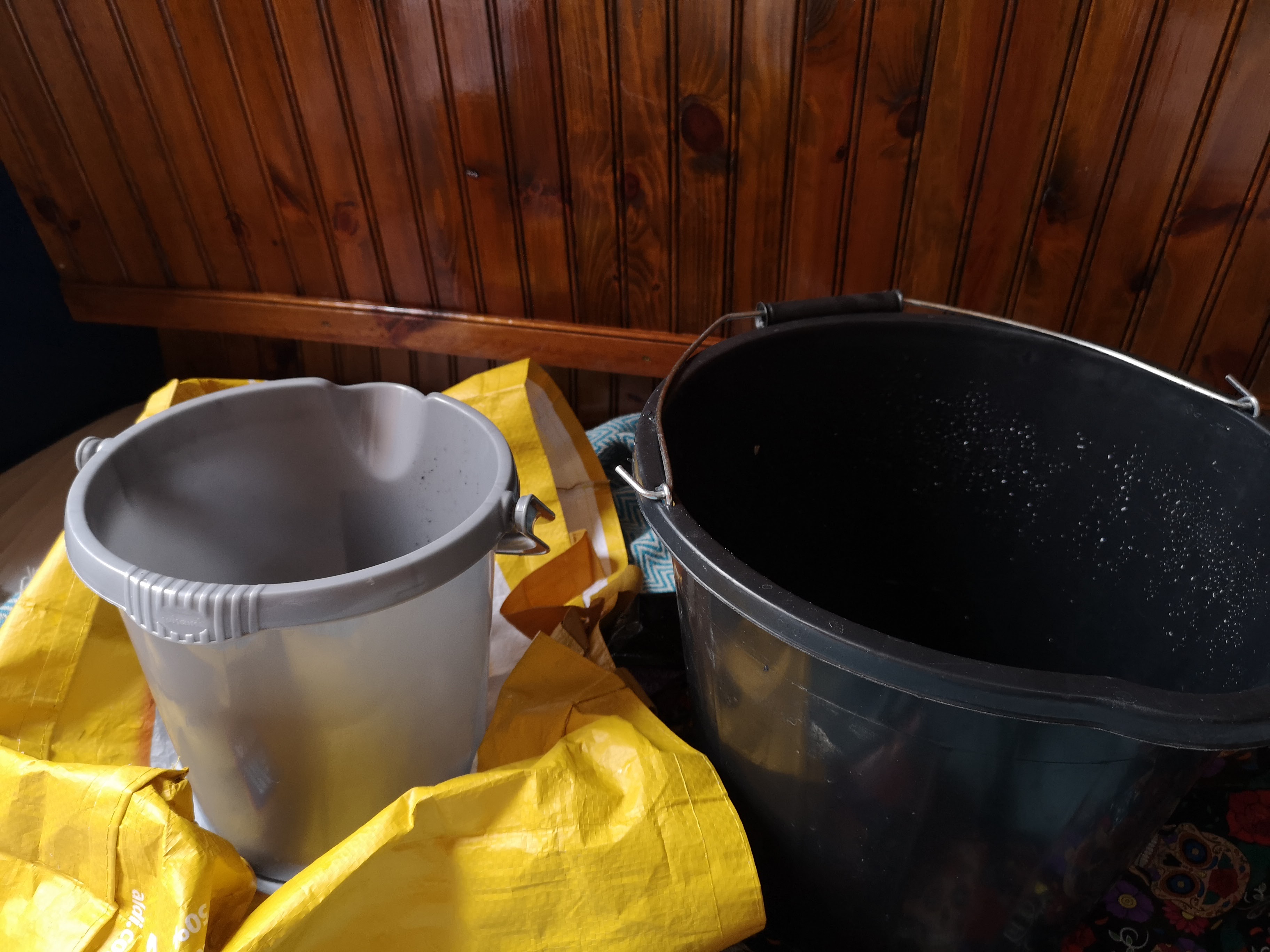 Again to the sounds of dripping, as the water finds its new home in the carefully placed buckets.