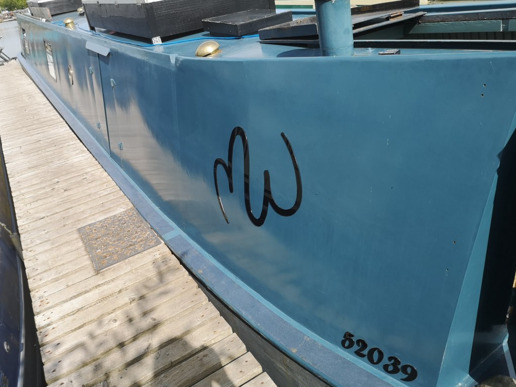 We fixed the solar boxes, parts of which have become rotten. We break them apart, and replace them with new slabs of wood, painting them before putting them back together again.. We go from one end of the boat, to the other, looking at everything she needs to bring her back to life, finish the jobs we never finished and repeated some he had. After: washing, painting, fixing, varnishing, repairing, re-wiring. After whole pots of paint split; broken backs and meltdowns; she is back. Misty even has a name again, as we christen her with bespoke graphics ( just as we had dreamed of) carefully made on the laser cutter, and stuck on her one by one. Misty is ‘back’ and ready for her tenants..