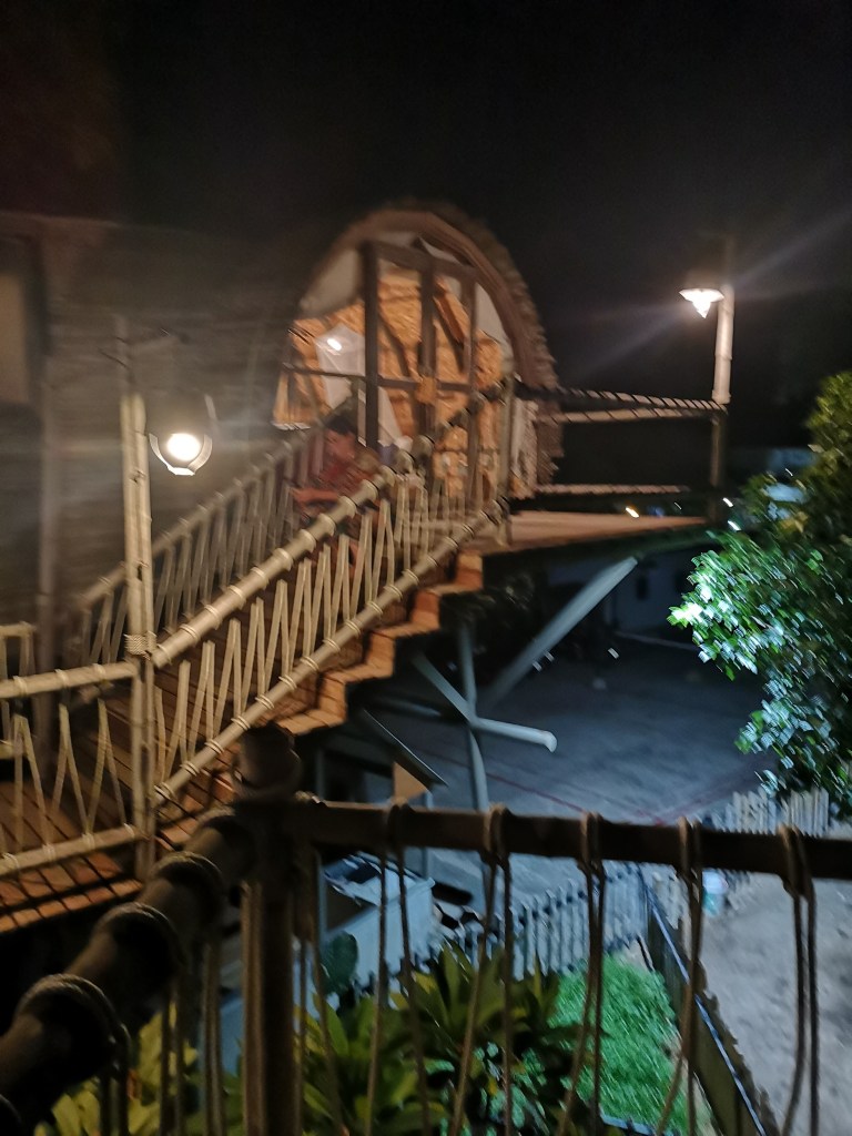 The Mud Hotel is not how I expected it to be. It has a Ferris wheel outside and is built completely on stilts made of bamboo with pathways made out of rope ladders. It is a child’s and adult’s wonderland. Our room is a barrel on stilts with a bathroom extended to the side and has a balcony looking out to sea. Inside is equally as splendid, with its fine attention to detail. “it’s how I imagine you would dress a room if you were hosting” Sam says. It has a pen and paper, a dressing gown and even an umbrella along with the much needed air-con and we dive into our barrel frequently to cool down. The whole place is rustic and beautiful, an architectural delight.