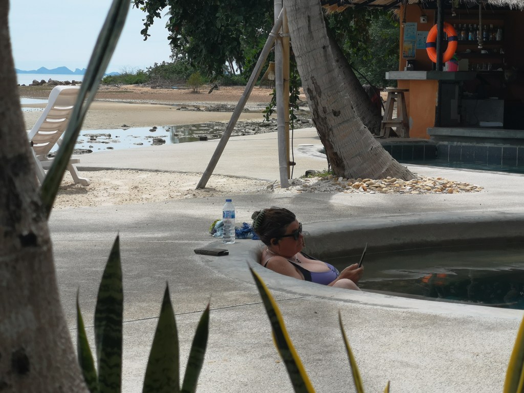 ‘Our house’ came about quite by chance, we were viewing a lovely property, quite close to Lamai beach. It had everything: parking; a pool; a garden; all the mod cons and very ‘Ibiza’. I say to Sam, I love this place. I want this, but with 3 bedrooms and a bit higher up in the jungle! The estate agent said he had another place, it wasn’t up for rent yet, but he could show us anyway. It was just as I asked for, it had: 3 bedrooms, a pool and was further up in the jungle! It is not quite as glam and is more tired looking than the other house- less Ibiza and less mod cons. Nevertheless it has a beautiful outside space (the best we have seen actually) and is cheaper. So for now this will be our home.