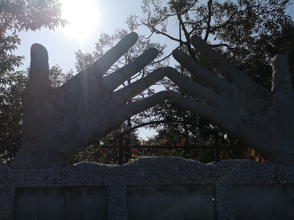 Most of the properties we have viewed, we have found on Facebook Marketplace. Our next plan is to take to the road and drive around the island looking for signs of places to rent. Our plan doesn’t quite go ‘to plan’. We stumble across one sign that says ‘pool house for rent’ and next to it a sign that points to a real estate agency. Having phoned the number on the board, we are somewhat surprised by what we find. Electric gates slide open to reveal a strange world that, in Sam’s words ” looks like a 1970’s theme park from Bulgaria”.